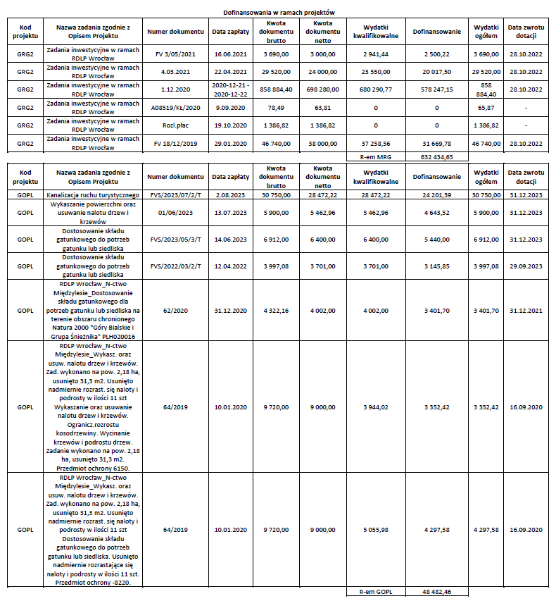 Dofinansowania w ramach projektu GOPL i GRGR2