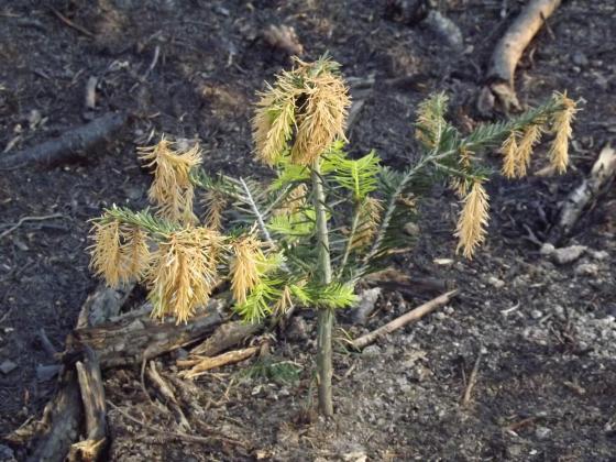- niedobory składników glebowych (objawiające się żółknięciem szpilek świerka).